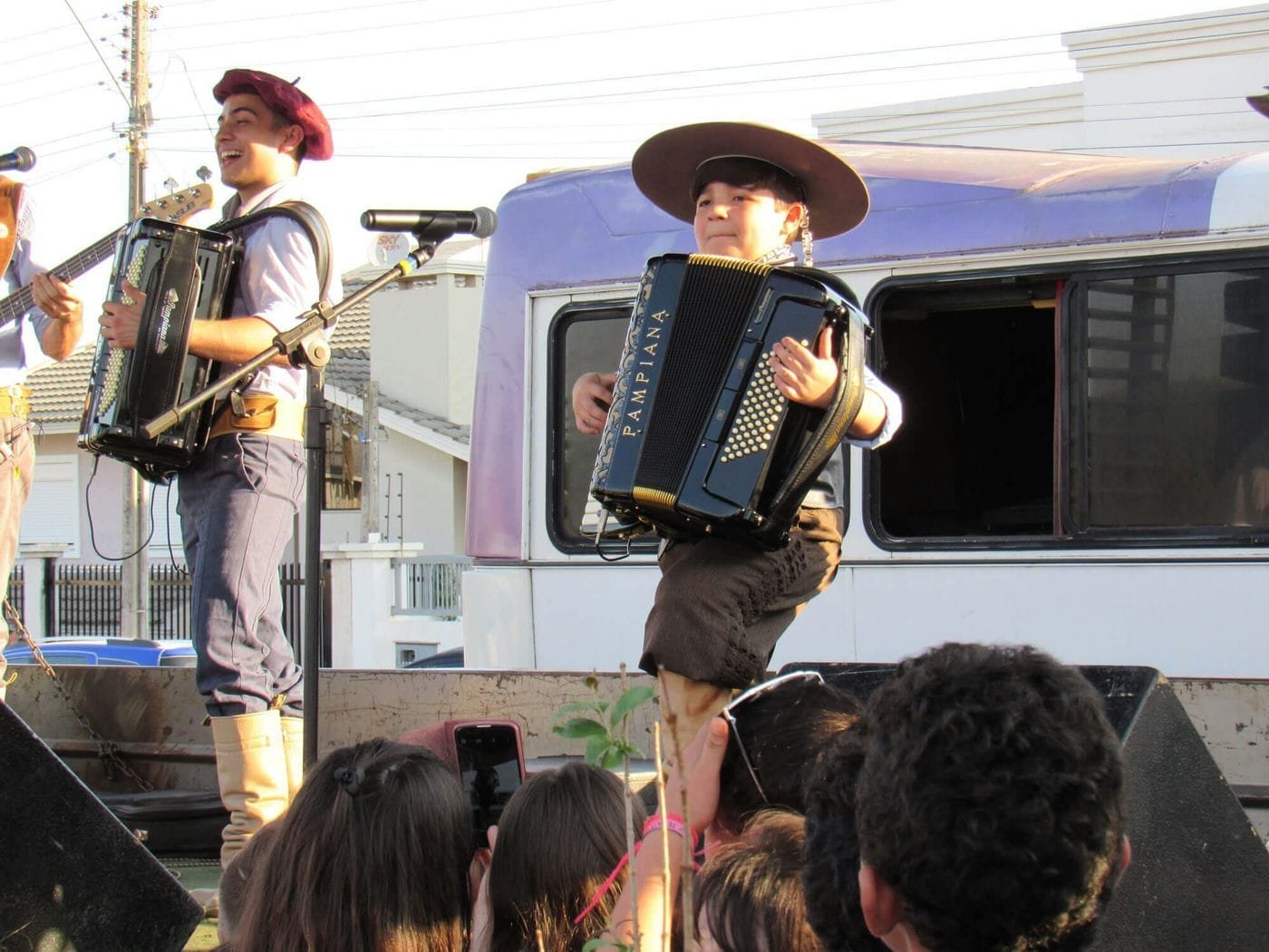 O gauchinho de Estância Velha esteve acompanhado do irmão Eduardo, com quem se apresenta como “Irmãos Machado” (os dois tocam gaita), do pai Ari, que também é músico e faz parte do show, e, claro, da mãe Elizete.