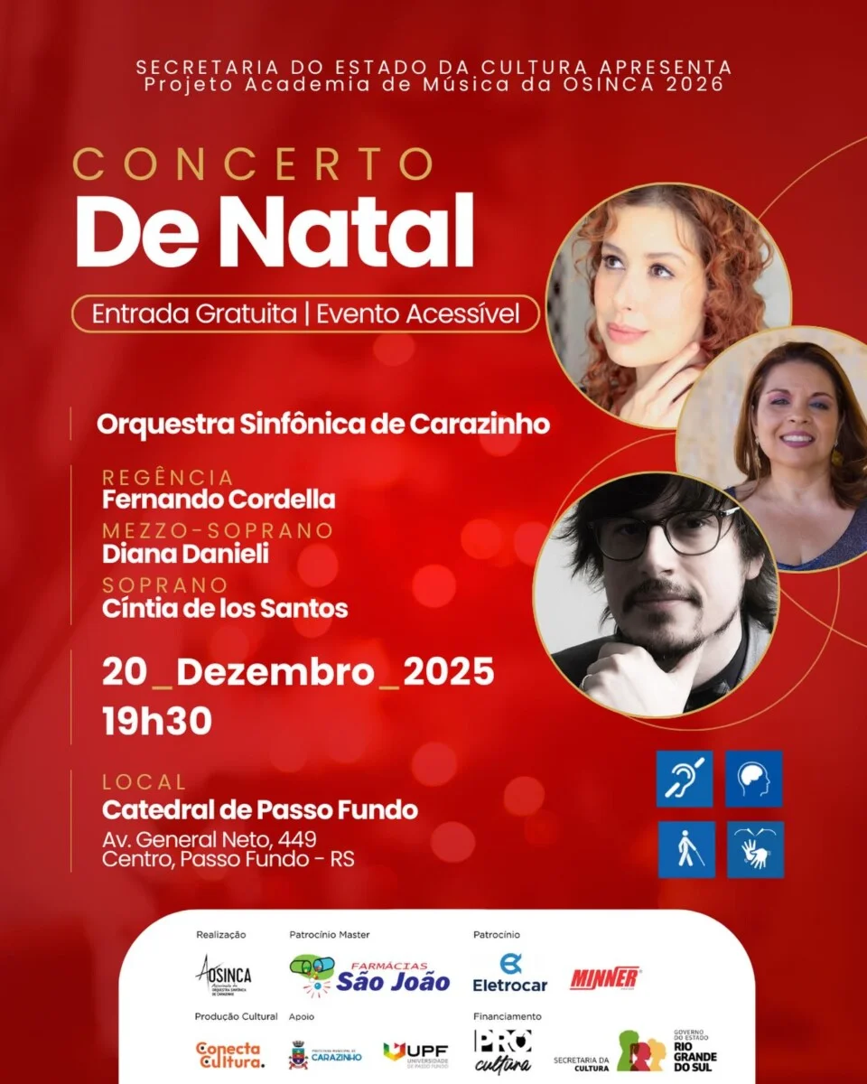 Em Passo Fundo, o concerto acontece no dia 20 de dezembro, às 19h30, na Catedral de Passo Fundo. A apresentação transforma o espaço em um grande cenário sonoro, com um repertório cuidadosamente escolhido para celebrar o espírito natalino e reunir famílias em um momento de sensibilidade e celebração.