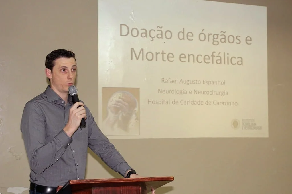 Durante sua fala, o neurocirurgião explicou que a morte encefálica consiste na parada total e irreversível das funções cerebrais. Nesses casos, ainda que os demais órgãos continuem em funcionamento, por meio da utilização de aparelhos, o paciente não voltará à vida.