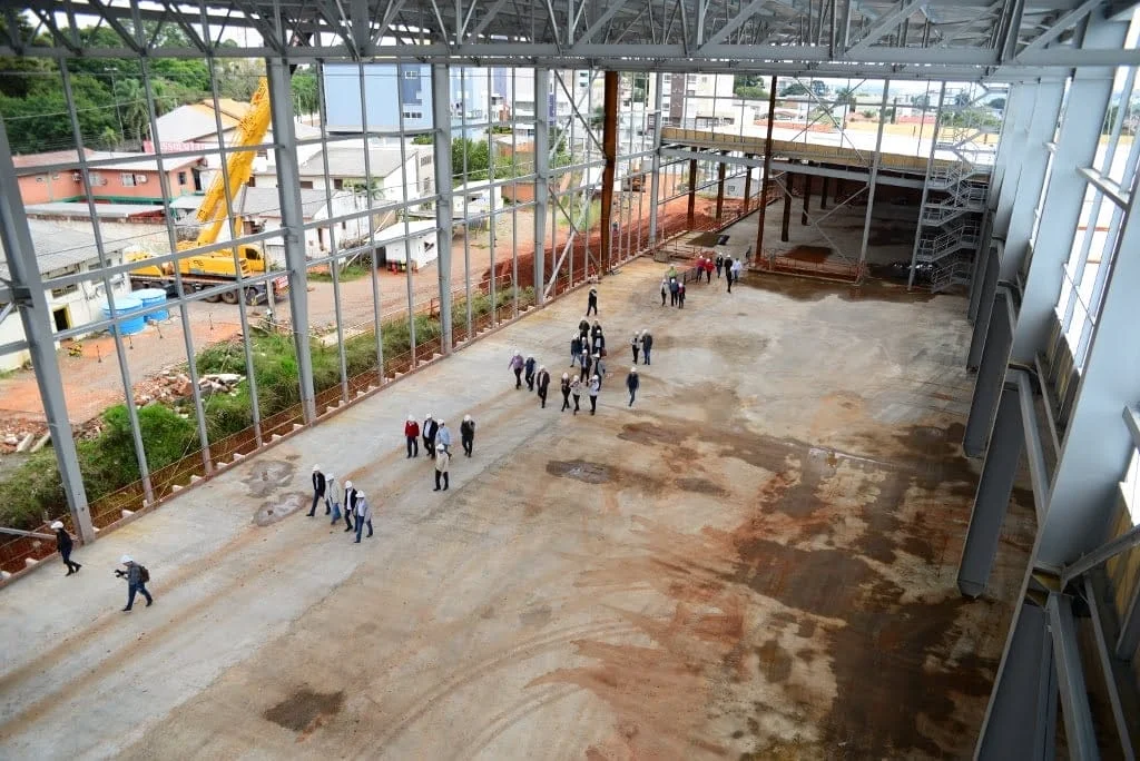 Apontado como um dos maiores empreendimentos já construídos na região Norte do Rio Grande do Sul, o Passo Fundo Shopping recebeu nesta terça-feira (9) o prefeito de Passo Fundo, Luciano Azevedo, o vice-prefeito, João Pedro Nunes, secretários municipais, imprensa local e representantes de entidades do comércio do município para uma visita técnica à obra. Neste mês de maio completou um ano desde a instalação do primeiro pilar do empreendimento. Além de conferir toda a estrutura e o andamento das obras, foi possível conhecer melhor o projeto arquitetônico, visualizar tecnologias inovadoras de construção empregadas no empreendimento e localizar de dentro do Shopping as áreas e lazer, alimentação, lojas e âncoras.