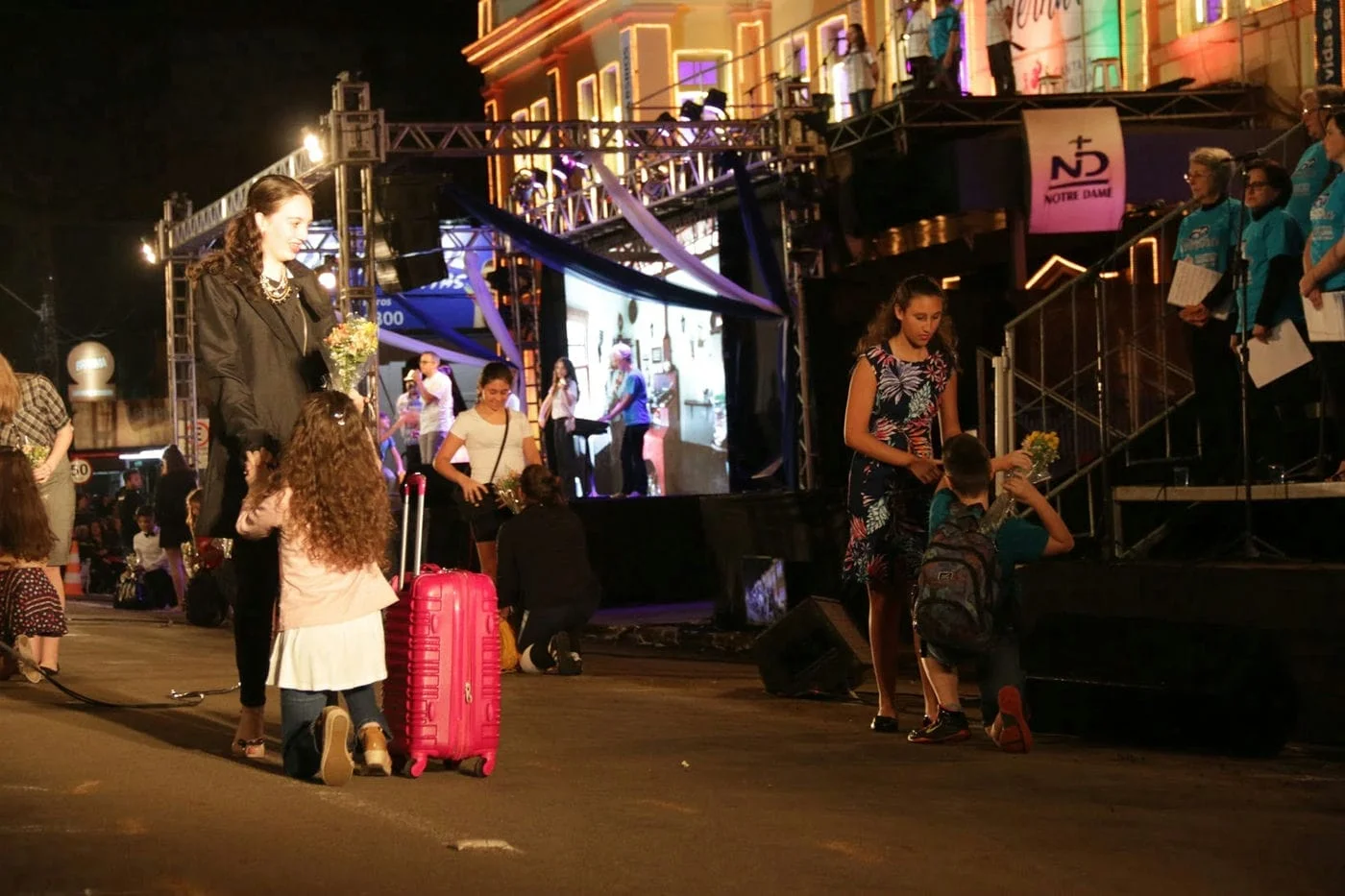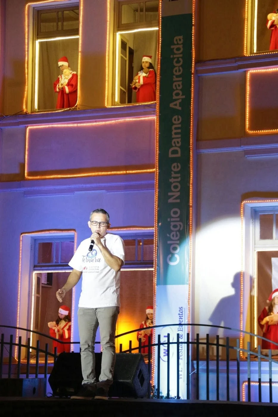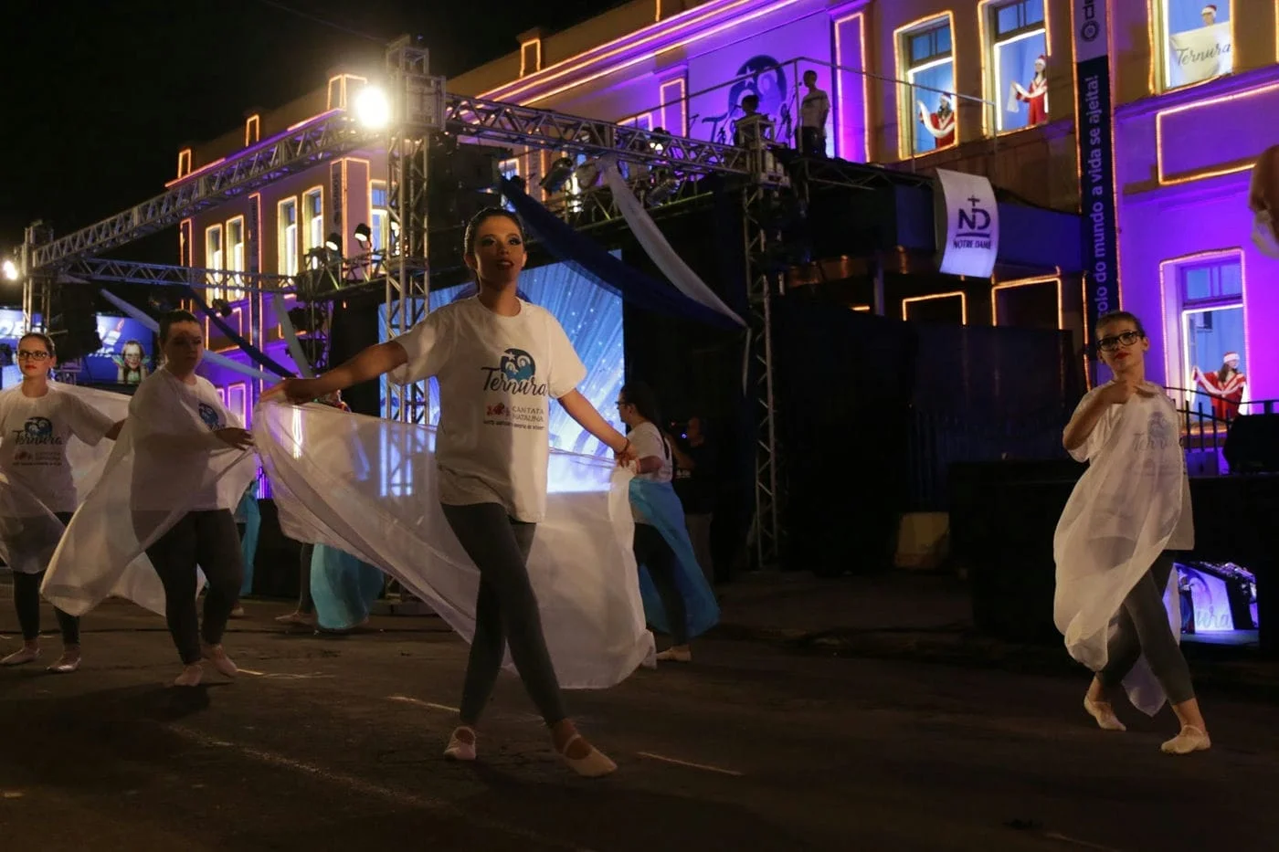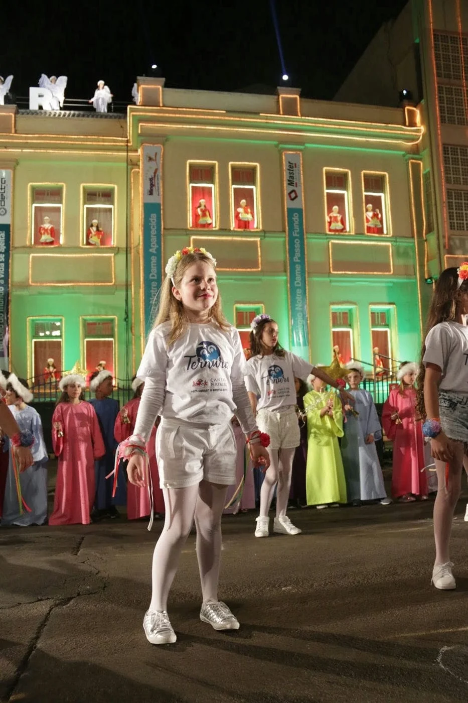 Das janelas do Colégio Notre Dame Aparecida, de Passo Fundo, crianças em forma de artistas cantavam para convidar o público a celebrar o nascimento de Jesus. Neste ano, cada ato e canção foi montado com base na palavra que é o tema da edição: a ternura. Era possível vê-la nas mães com seus bebês no colo; nas crianças que encenavam e dançavam com largos sorrisos no rosto; nas letras das músicas tão lindas e cheias de significado, que anunciam que o Natal está chegando para celebrarmos a vida e o nascimento de Jesus.