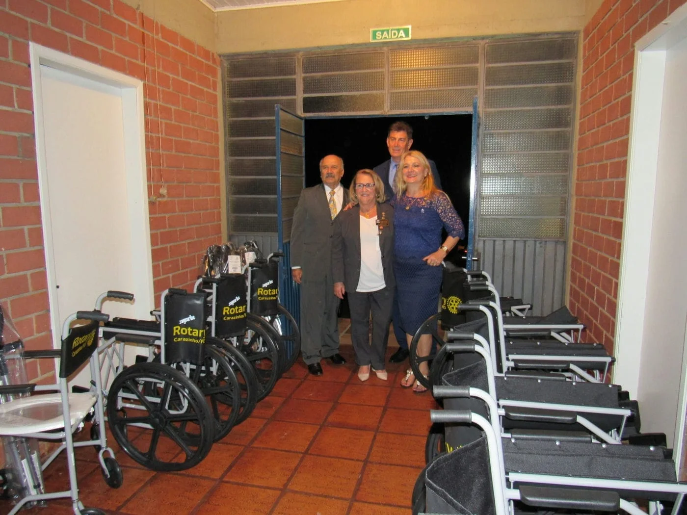 Na oportunidade ainda o Rotary fez a entrega de cadeiras de rodas e cadeiras de banho para a Liga Feminina de Combate ao Câncer .