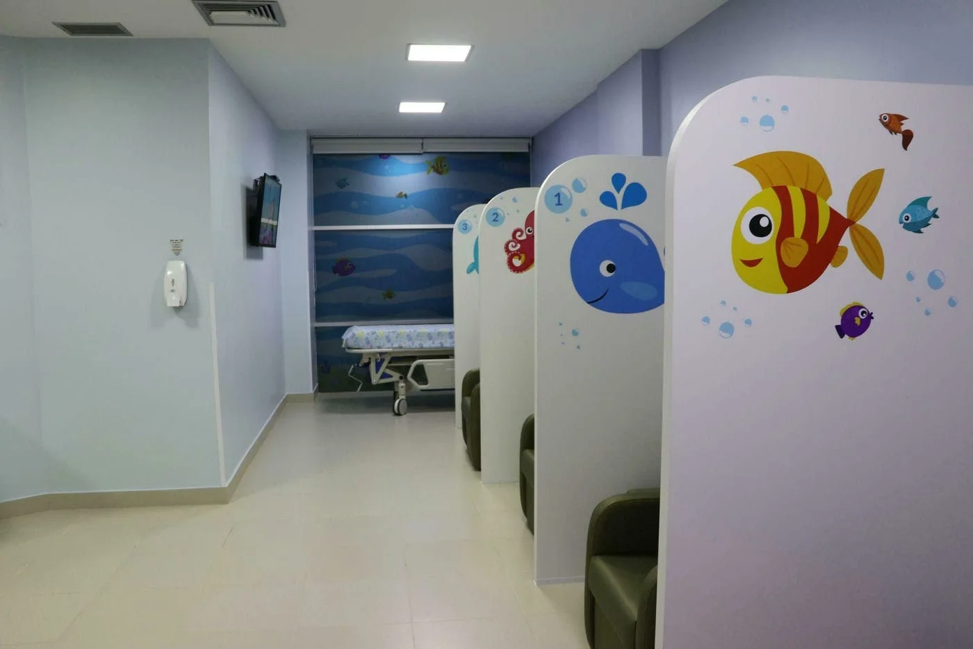 Além de estrutura e profissionais qualificados, o Serviço traz a ludicidade e humanização, fundamentais quando se fala em atendimento pediátrico. A Gerente de Enfermagem da Unidade Uruguai, Enfª Márcia Ferrão de Medeiros salienta que o espaço foi ambientado com tema fundo do mar, trazendo um colorido e alegria para o ambiente. “A equipe foi capacitada para atender não só a criança, mas dar suporte a família. Além do ambiente, atrativo para acalmar os pequenos no momento da dor e do medo”.
