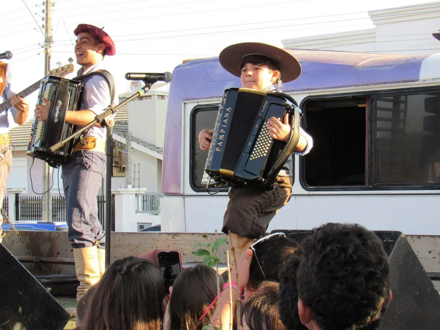 O gauchinho de Estância Velha esteve acompanhado do irmão Eduardo, com quem se apresenta como “Irmãos Machado” (os dois tocam gaita), do pai Ari, que também é músico e faz parte do show, e, claro, da mãe Elizete.