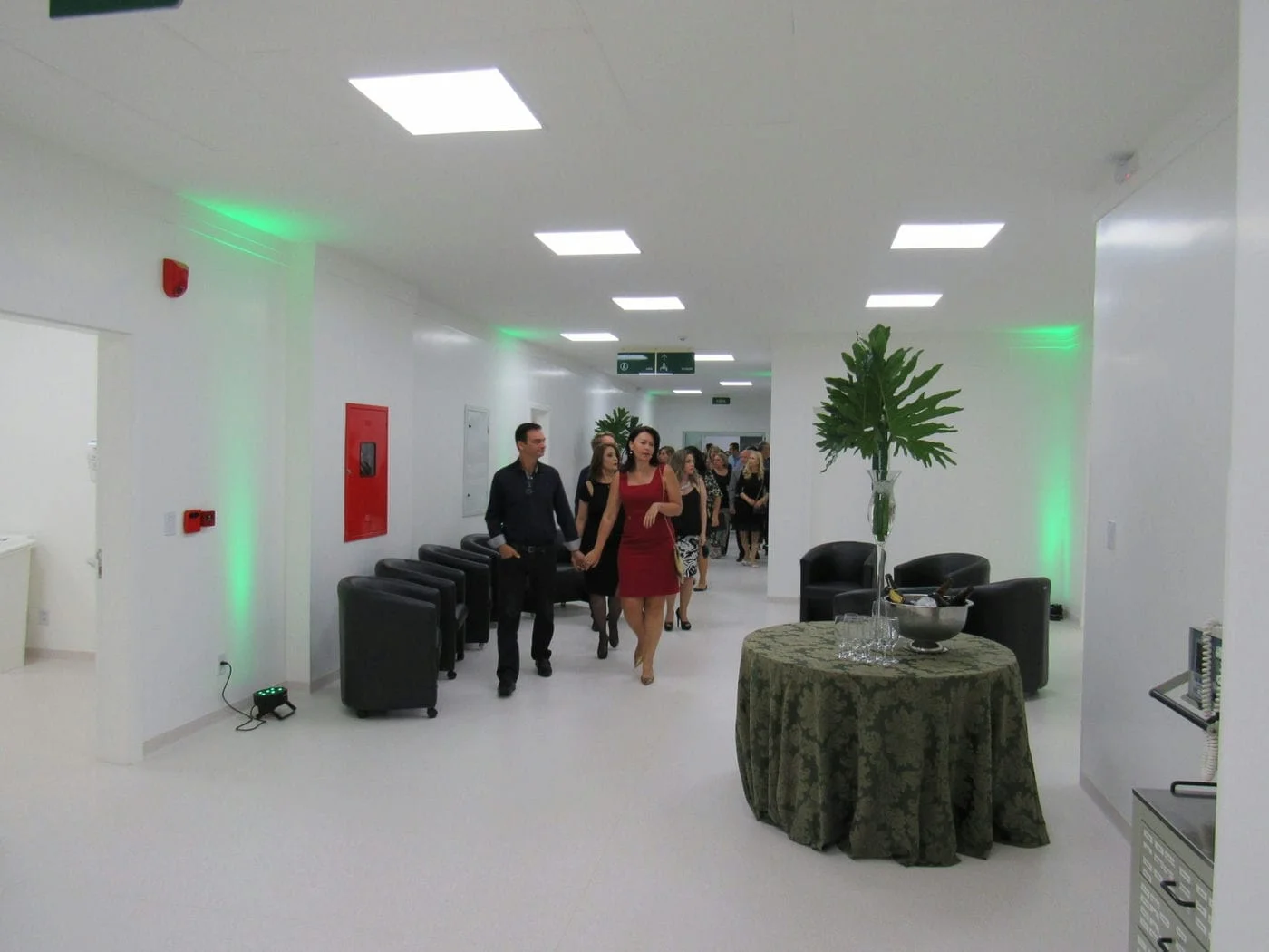 As novas instalações contam, ainda, com um andar técnico, onde estão instalados os equipamentos de inspeção e manutenção da climatização por fluxo laminar, sistema que forma uma cortina de ar tratado ao redor da mesa cirúrgica, evitando a contaminação do campo cirúrgico.