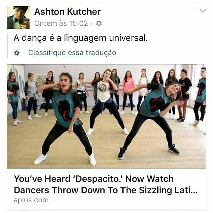 Coreografia da música internacional Despacito recebeu comentários positivos e foi compartilhada pelo ator Ashton Kutcher