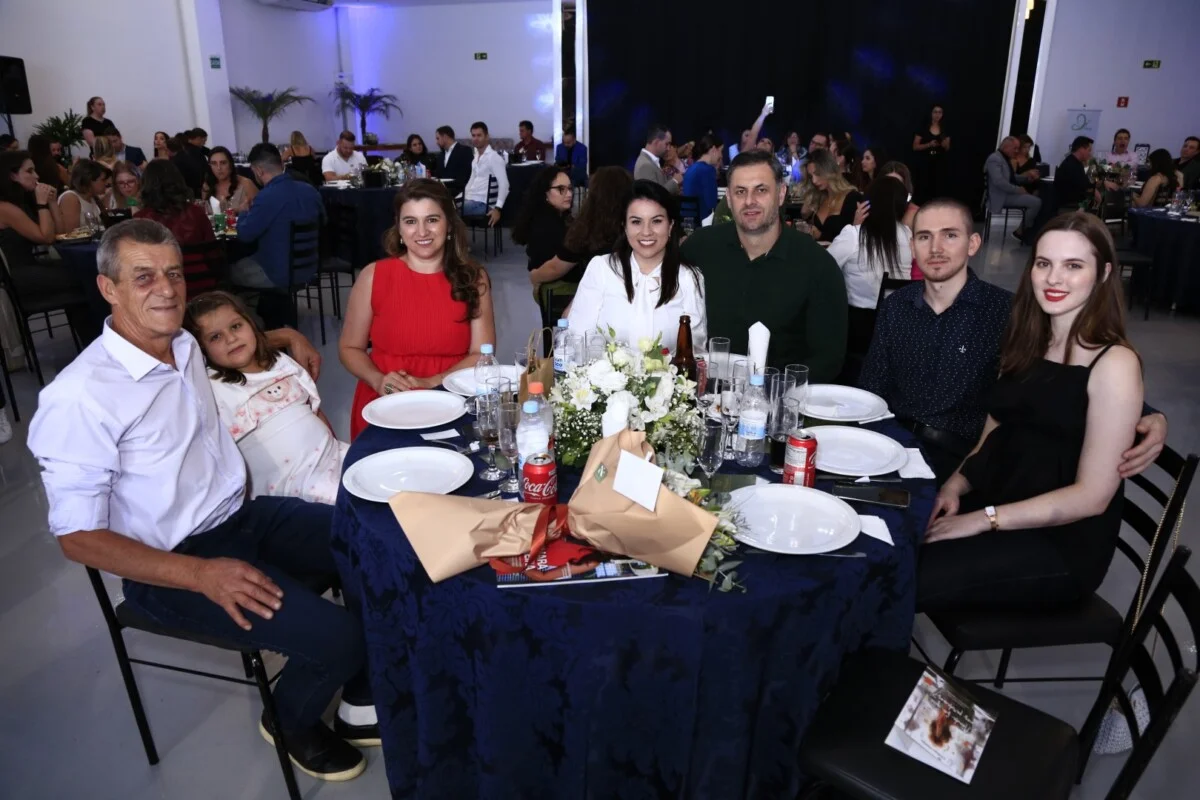 O jantar foi assinado pelo Chef Cassiano, da Bless Centro de Eventos, e a sobremesa ficou por conta dos deliciosos doces da confeitaria Dom de Ju. A noite foi finalizada com uma bela apresentação da cantora Juliane Baseggio.