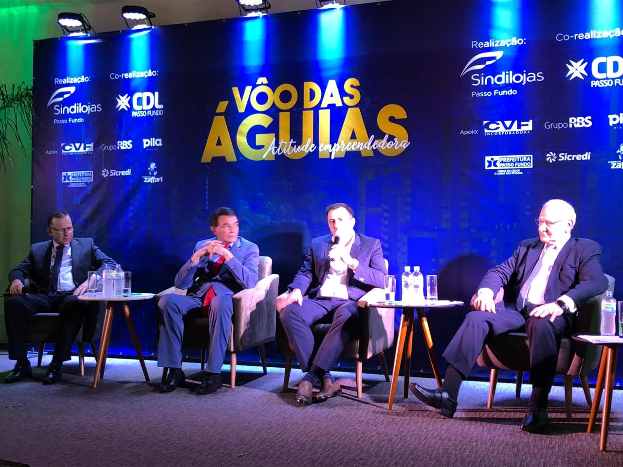A águia é símbolo de poder, coragem e autoridade. O Sindilojas e a CDL Passo Fundo reuniram 4 “águias” da cidade para contar suas experiências empresariais na noite desta terça-feira, 6 de agosto. O público de Passo Fundo lotou o Clube Comercial para assistir ao painel.
