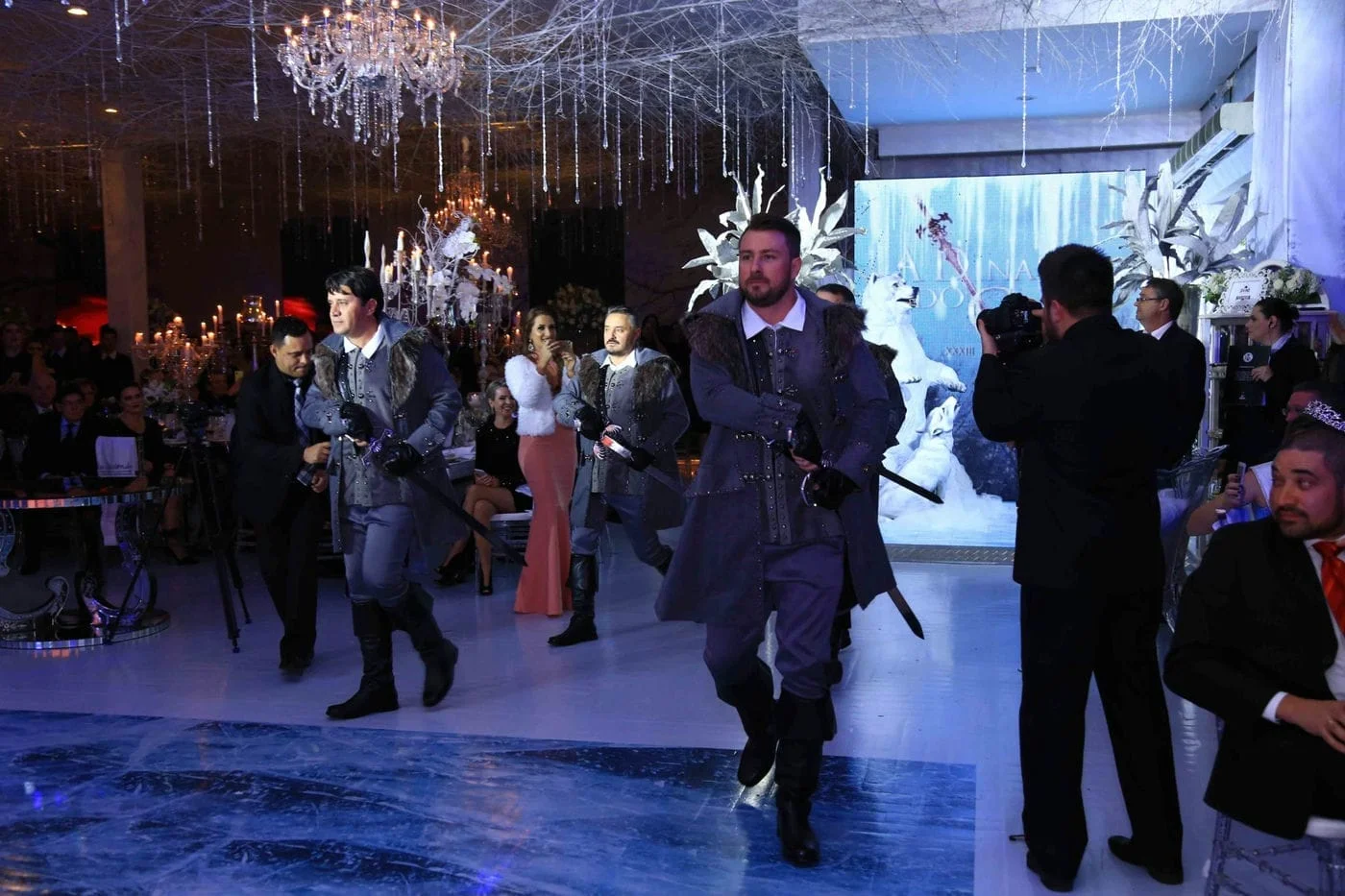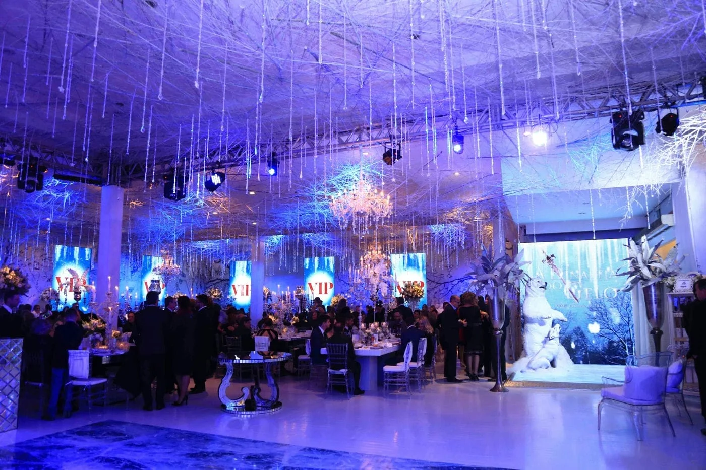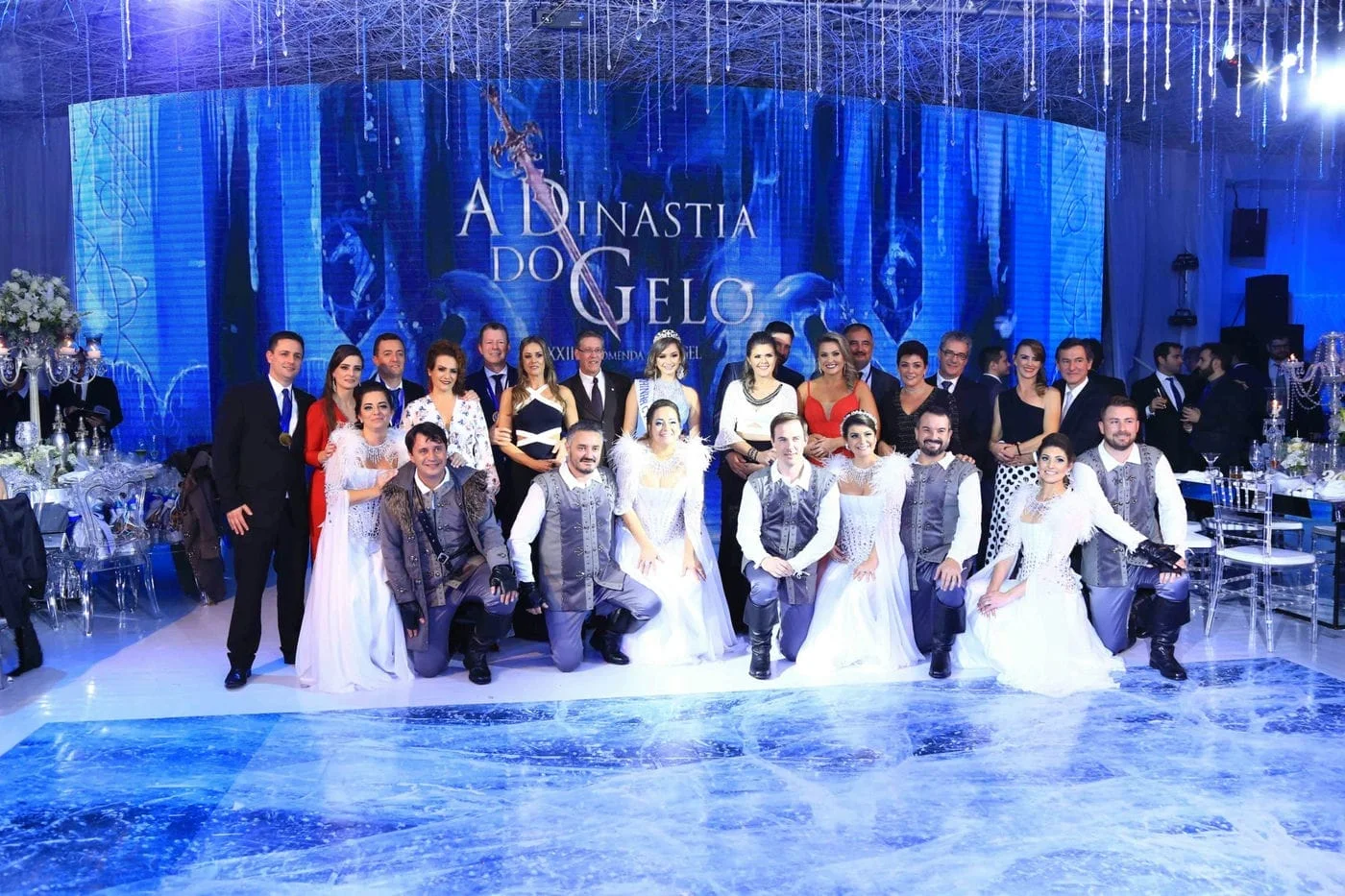 O sábado (19) de temperaturas baixas combinou perfeitamente com a temática da XXXIII Comenda do GEL – A Dinastia do Gelo. O Salão Nobre do Grêmio Esportivo Liberdade foi lindamente decorado, com estátuas e bar de gelo, criando o cenário perfeito para a noite.