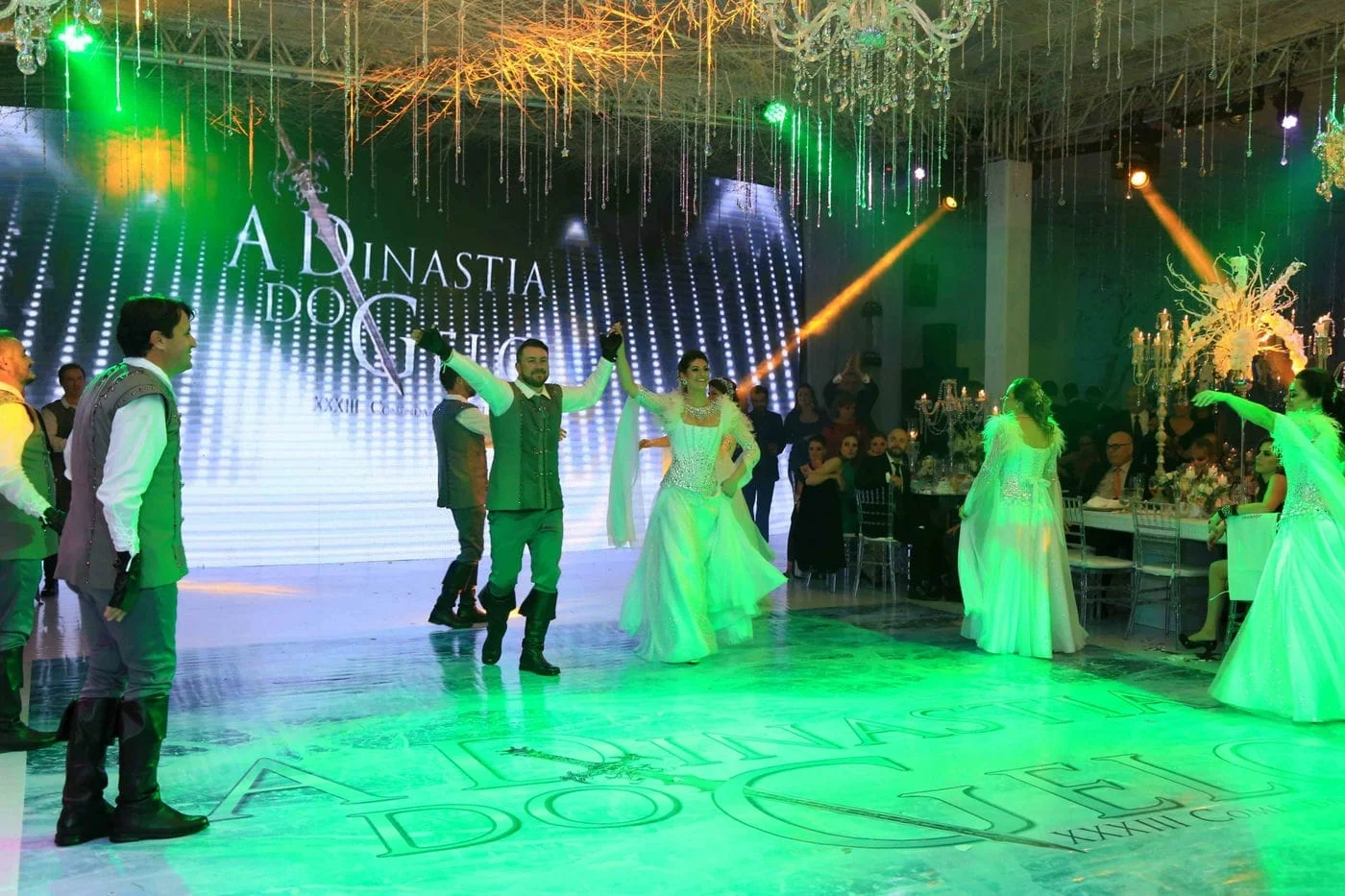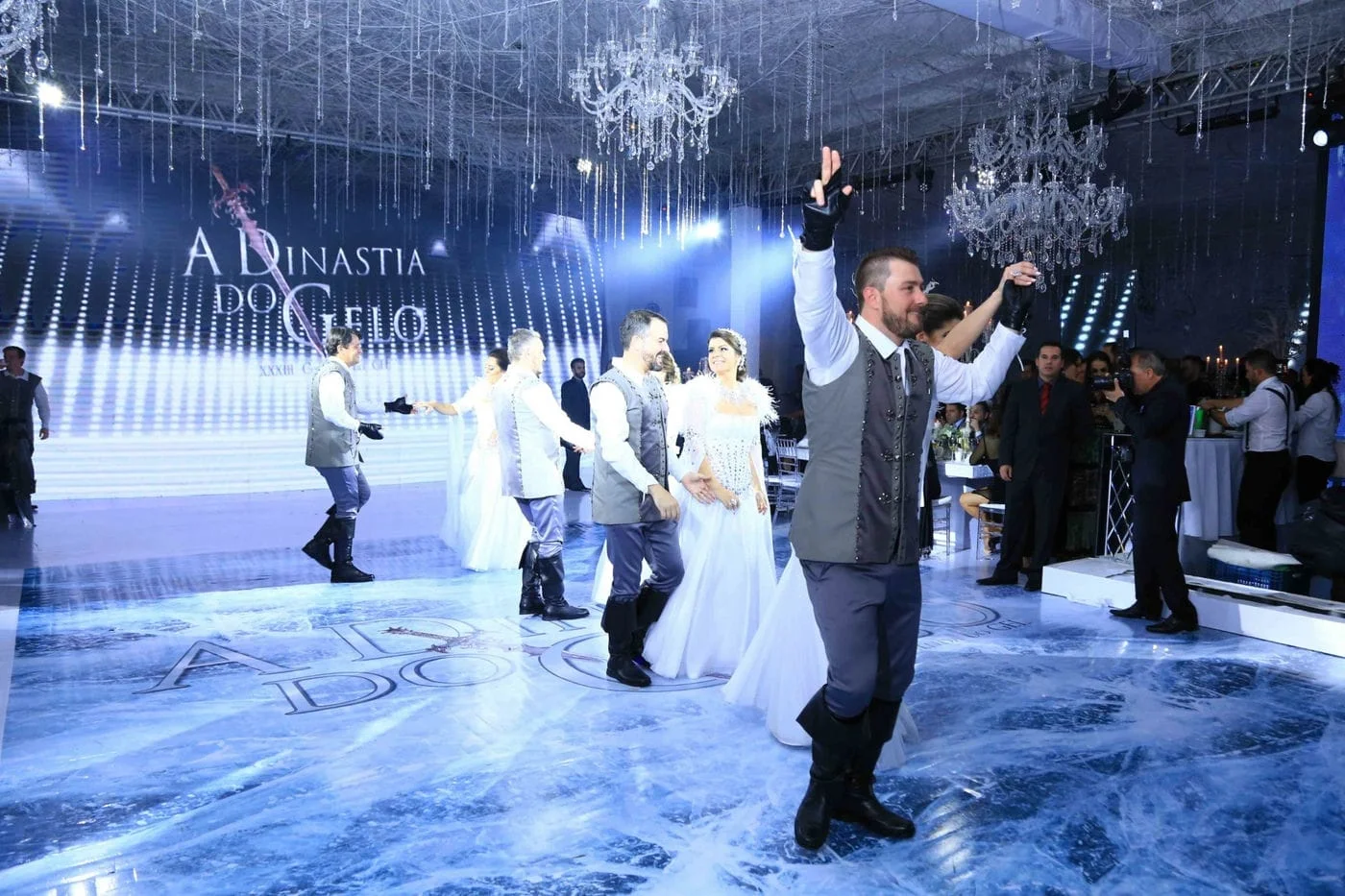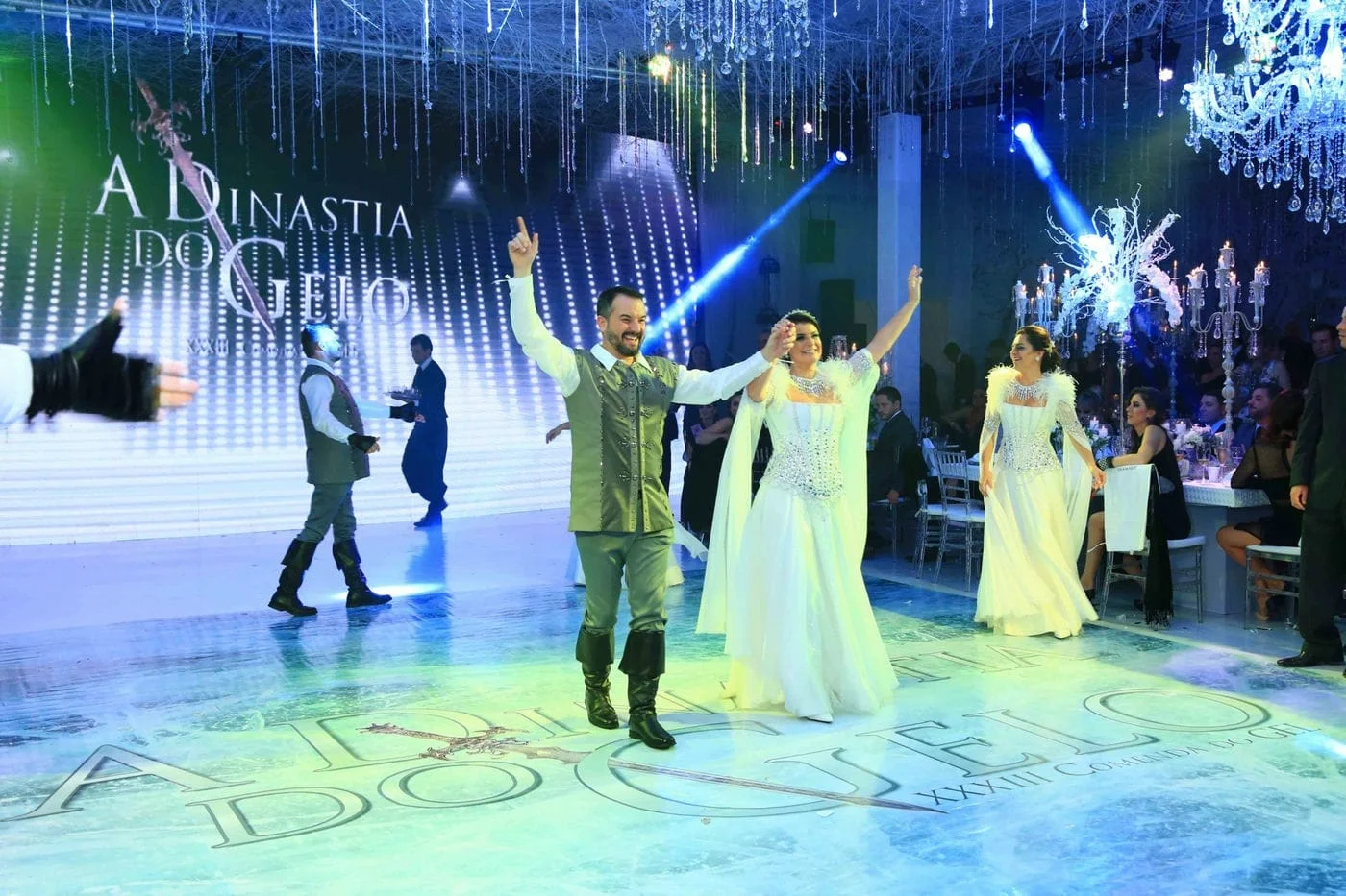 Os comendadores deste ano, Carlo Luigi Silvestri & Franciele Piccoli; Luis Henrique Souza & Francisca Fuga; Felipe F. Roso & Regina B. S. Roso; Claudio Jaime Ferreira & Vanessa Segala; Fabricio Rogerio Roso & Maura De Oliveira Roso, fizeram uma belíssima apresentação, trazendo o verdadeiro clima da Dinastia do Gelo para o evento.