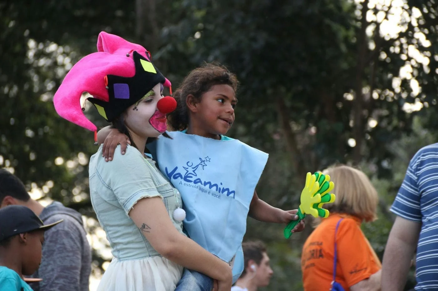 Palhaça Bizonha e Palhaço Sorriso, do grupo Voluntários do Riso animaram a tarde de todos os presentes na festa!