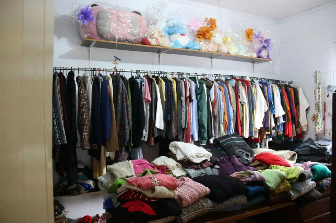 Numa salinha pequena, mas muito bem arrumada, estão disponíveis para compra inúmeras peças de roupa, além de objetos de decoração e brinquedos. “Aqui guardamos as peças melhores, tem algumas que nunca foram usadas”, explica. O Yacamim está aceitando doações, que podem ser deixadas lá na própria sede. “As pessoas doam, nos auxiliam e praticam o desapego que é muito importante também. Muitas vezes temos coisas que não usamos”, destaca a diretora.